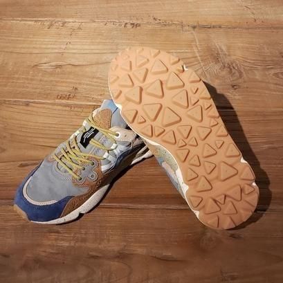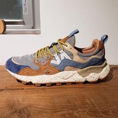 「Flower MOUNTAIN(フラワーマウンテン)」は2015年にデビューした日本のスニーカーブランド。ヨーロッパを中心に海外でも評判の高い注目のブランド。自然界をモチーフにしたデザインと職人の手仕事から生み出される雰囲気・質感がブランドのオリジナリティー。ファッションとしての側面だけでなく靴としての機能性も追求、快適な履き心地を重視したスニーカー作りもコンセプト。YAMANO3は、ブランドの定番モデル。デザイン、素材やカラーのコンビネーションでアーバンとアウトドアの融合をストレートに表現したモデル。複雑に重なり合う有機的なデザインラインはフラワーマウンテンならでは。落ち着いたカラーリングで合わせやすいアースカラーコレクションの「Brown/Deep sea」カラー。ブルーグレーカラーのナイロン素材とブルー、グレー、ブラウン、ベージュのスエード素材を組み合わせた上品な配色のモデル。※メーカーサイズ表記と当店のサイズ感表記は異なります。当店では革靴基準のサイズ感表記のため。